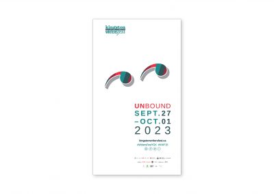 Kingston WritersFest was a longtime client, and I’ve been working with the team since 2015. This was a unique year given how far the team wanted to work outside the box, and thus wanted to find a graphical solution that went beyond the usual concepts chosen in prior years. This concept won out and I developed everything from the theme, graphics, typography, to all collateral and print/digital pieces. This artwork was well received, and the accompanying microsite that went with it was successful enough with visitors and team members alike that it formed the base for a full overhaul of the full KWF site for 2024. All in all, 2023 was a brilliant year for this project.